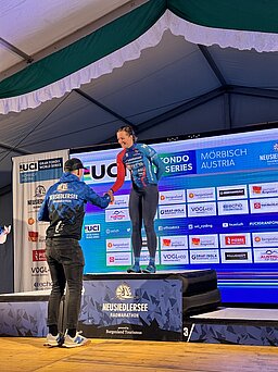 Svea Lüdorff zeigte an der Spitze des Rennens mit unglaublicher Unterstützung von Thomas Gschnitzer und Daniel Pechtl ein ganz abgeklärtes Rennen. Im Ziel fehlten Ihr nur ein paar Hundertstel zum Podest und trotzdem war es Zeit zu feiern nach dieser Leistung, die erneut die Qualifikation zur UCI Gran Fondo WM bedeutet.