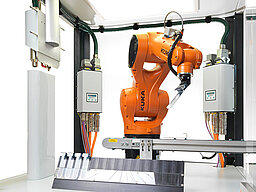 Neben Einzelanlagen mit Generator, PCU und Plasmadüse bietet Plasmatreat für seine Kunden sowohl Test- und Versuchsanlagen als auch voll ausgestattete PTUs (Plasma Treatment Units) an. Diese Anlagen können zur effizienten, unkomplizierten Vorbehandlung für nahezu jeden Prozess eingesetzt werden. Kleine, mittlere und große Mehrachsroboter innerhalb der Fertigungszelle können zum Transport der Bauteile oder zum Bewegen der Plasmadüse um eine statische Baugruppe eingesetzt werden. Die Teilezuführung kann wahlweise auch über ein integriertes Förderband oder einen Drehtisch realisiert werden.