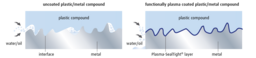 Plasma-SealTight® bonds to the metal (stainless steel, copper, aluminum, steel) at molecular level and at the same time generates organic compounds (functional groups) which ensure a strong adhesive bond between the metal and the plastic.